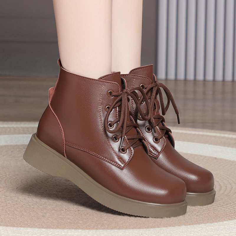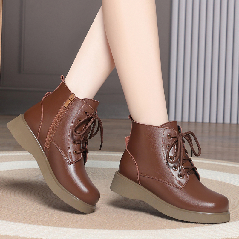 2025年冬季新款真皮加绒马丁靴软皮软底平底舒适保暖短靴羊毛棉靴