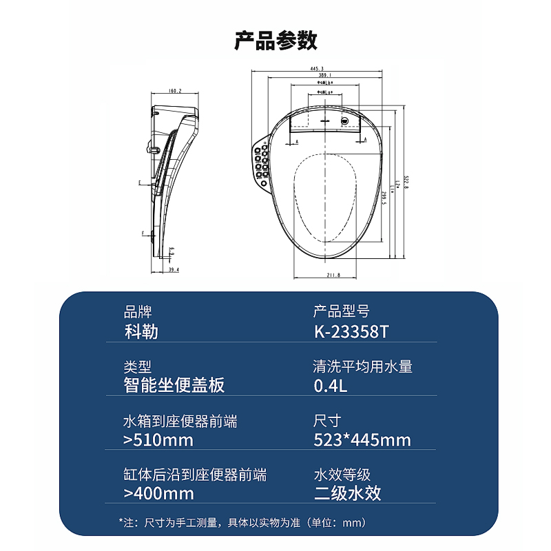 科勒智能马桶盖板即热坐便盖全自动冲洗洁身器电加热马桶圈23358T