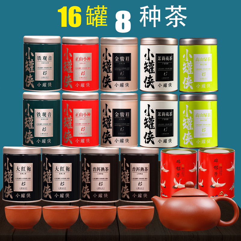 五大茗茶金骏眉红茶蜜香浓香型新茶小种红茶铁观音普洱熟茶送茶具