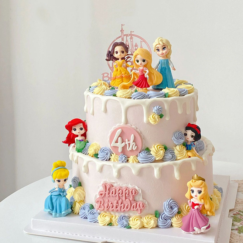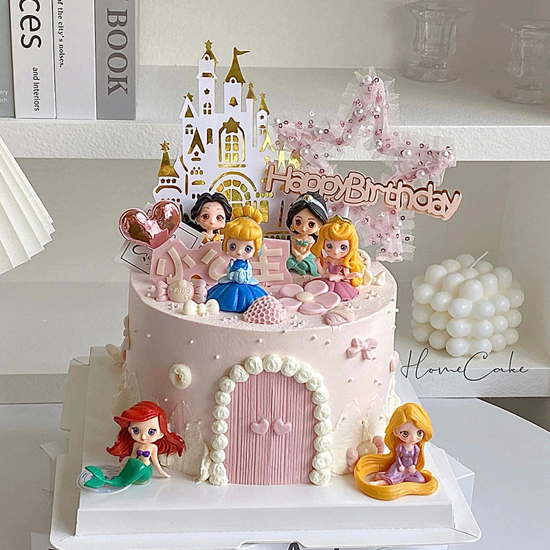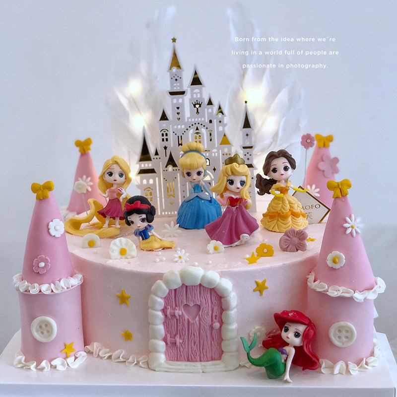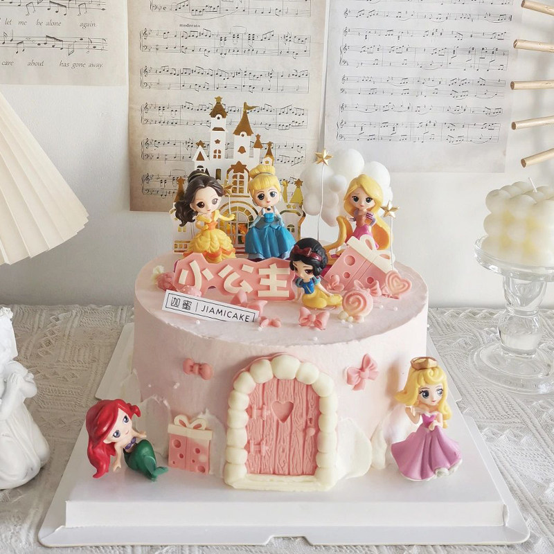 小公主蛋糕装饰摆件迪士尼白雪贝儿美人鱼公主女孩生日甜品台装扮