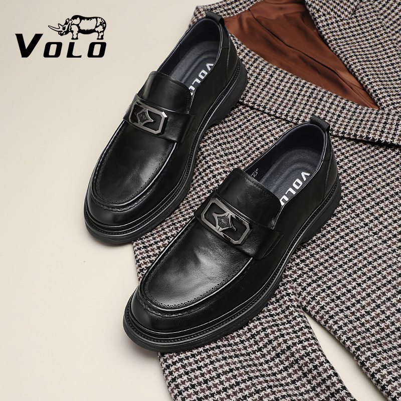 VOLO/犀牛乐福鞋男真皮秋季英伦风布洛克男士商务皮鞋一脚蹬男鞋