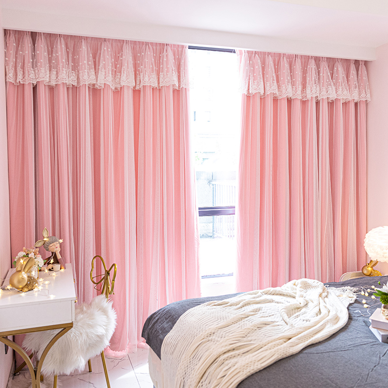 流行新款网红抖音双层布纱一体遮光成品蕾丝公主卧室客厅窗帘窗纱