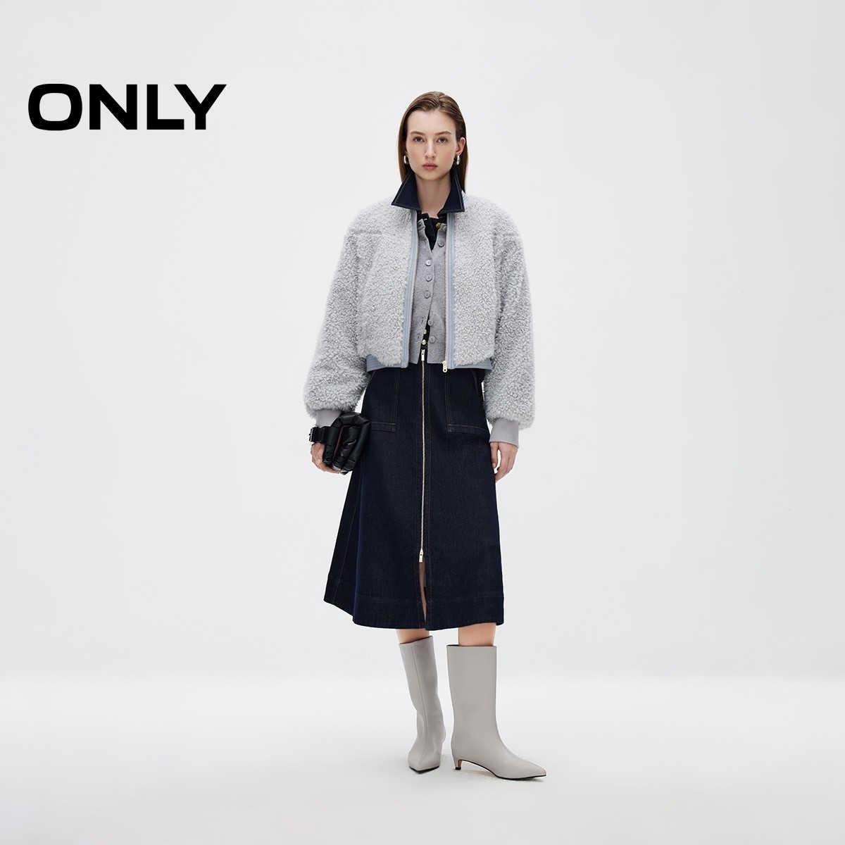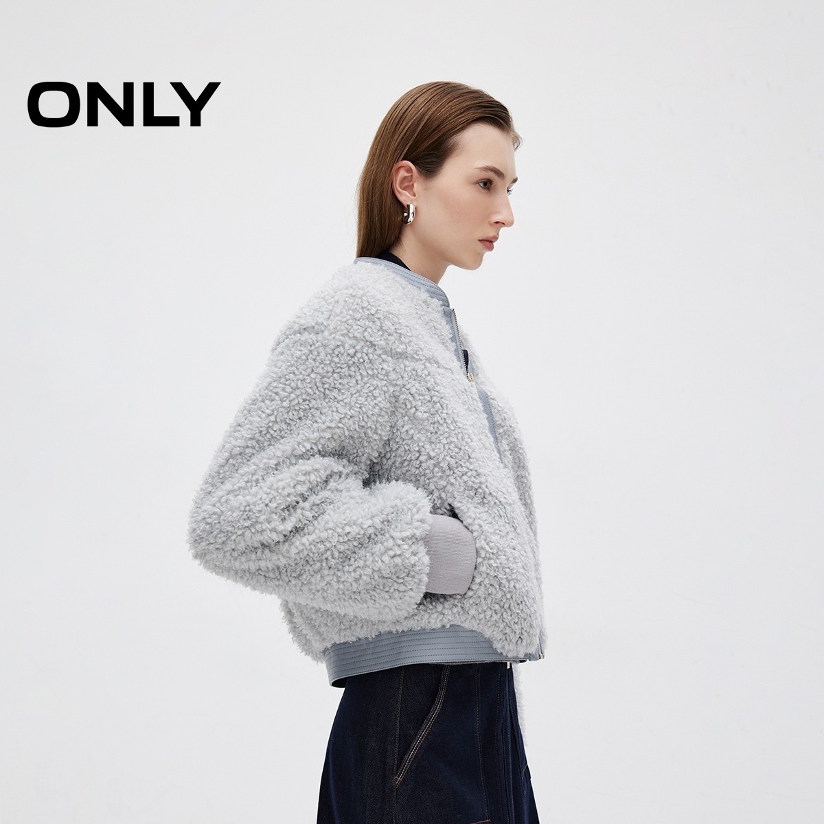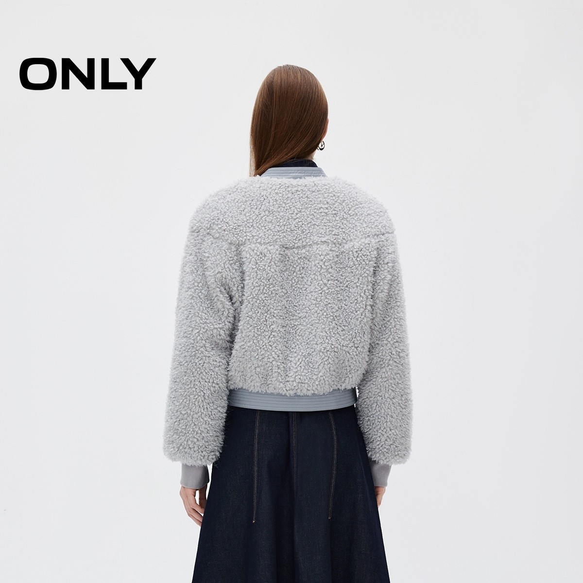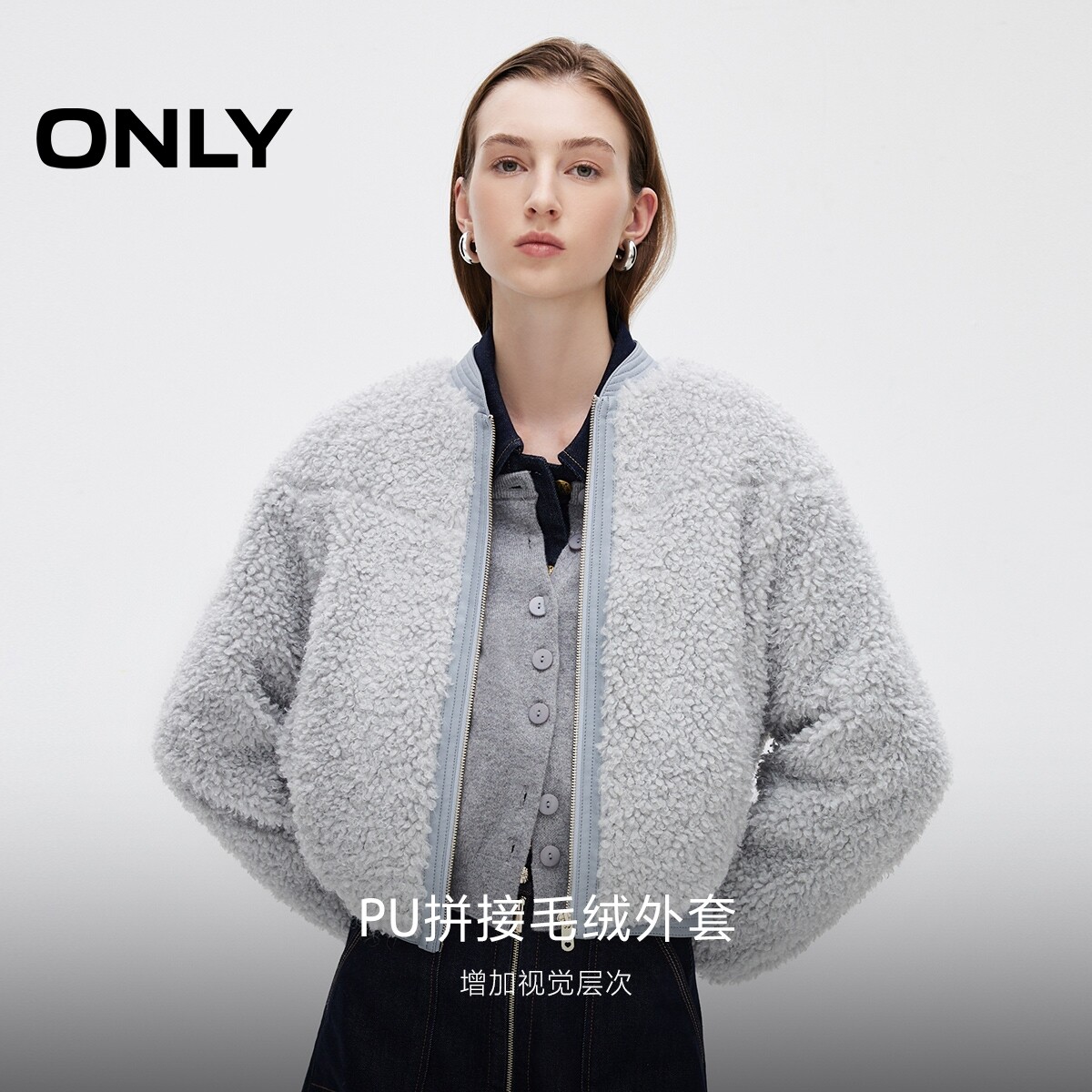 ONLY2025秋季新款个性帅气显瘦拼接毛绒短款夹克外套女|125136025