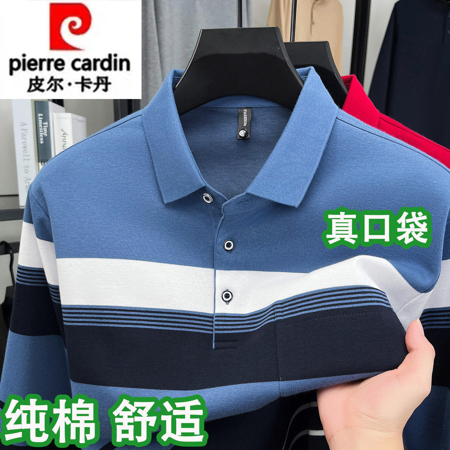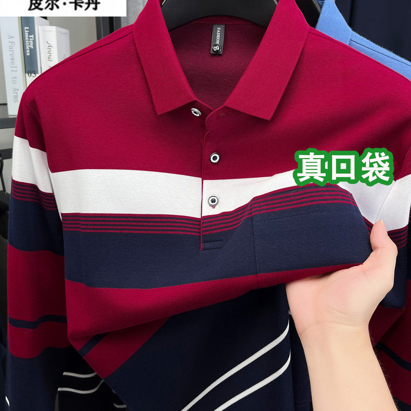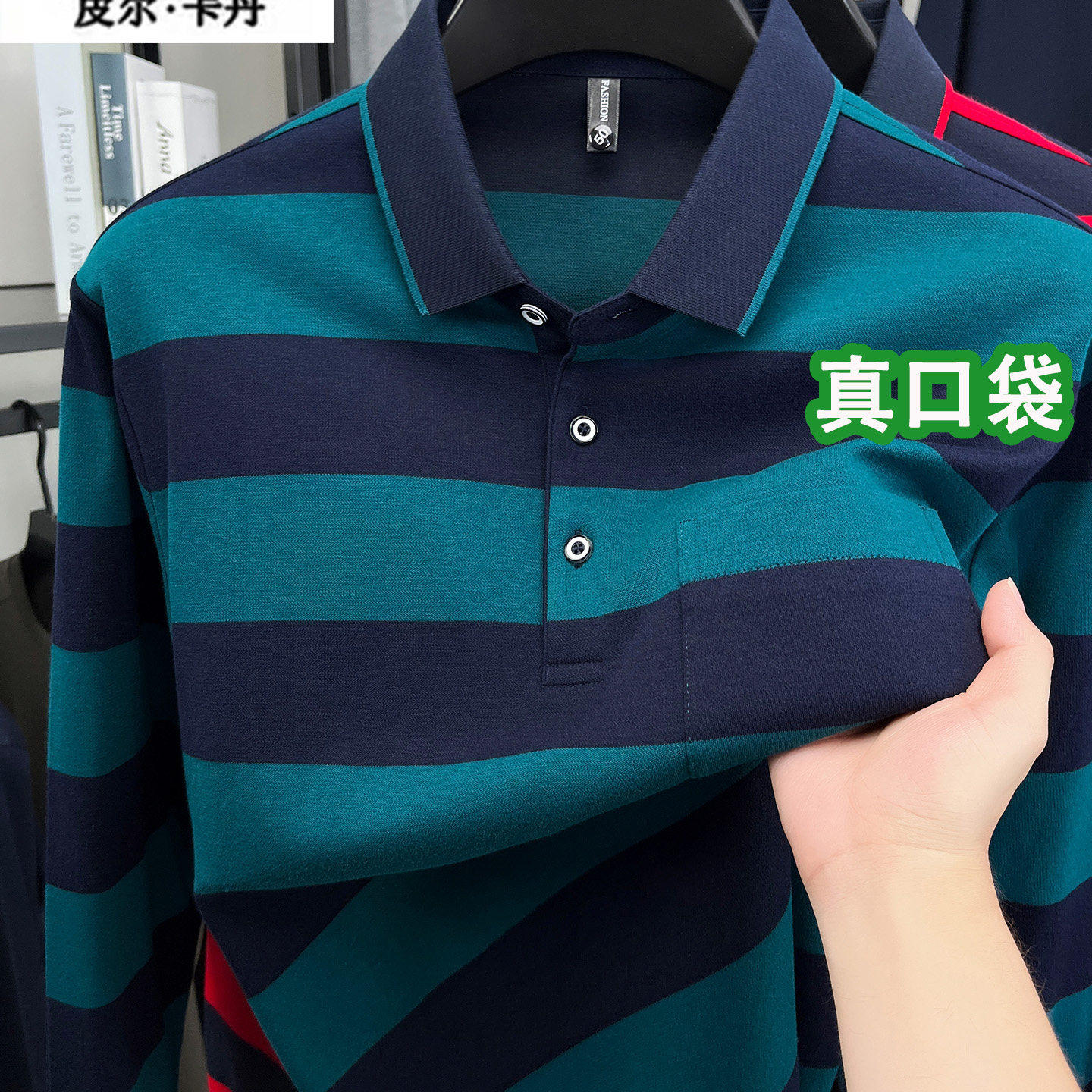 皮尔卡丹正品男士纯棉长袖T恤秋季条纹t高端品牌爸爸装宽松polo衫