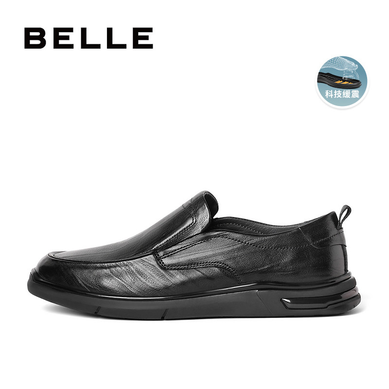 百丽男鞋套脚休闲皮鞋夏季新款商场同款竖纹正装商务8EV02AM4