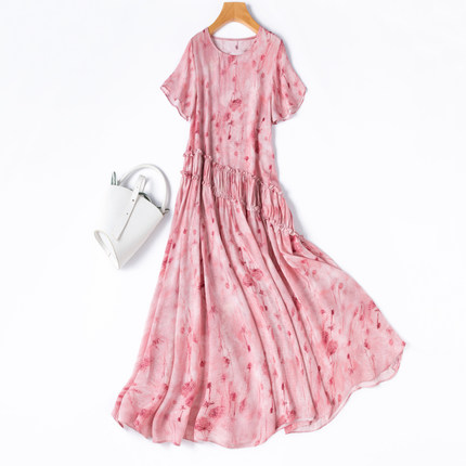3.2米大摆“浪漫粉色水墨真丝裙