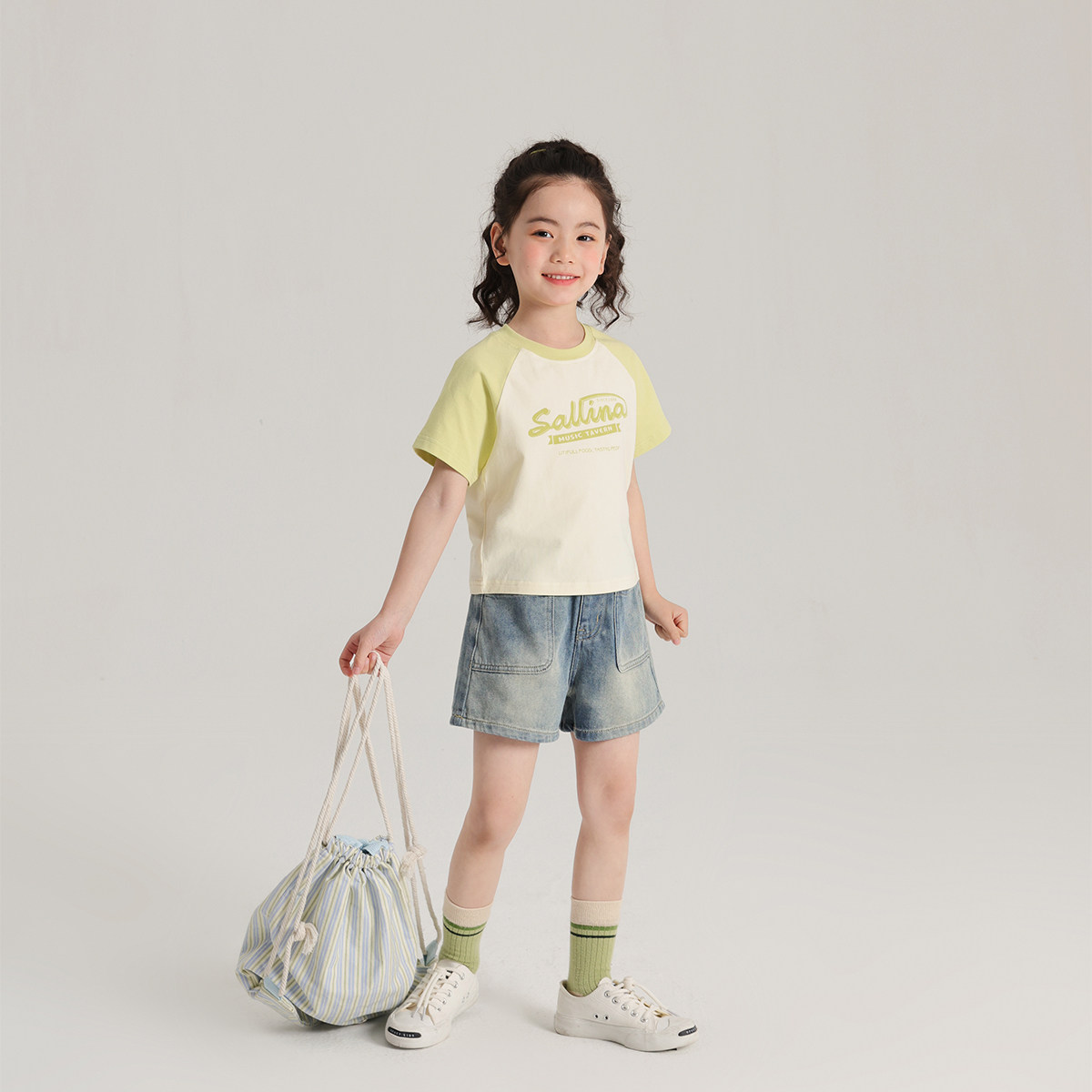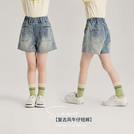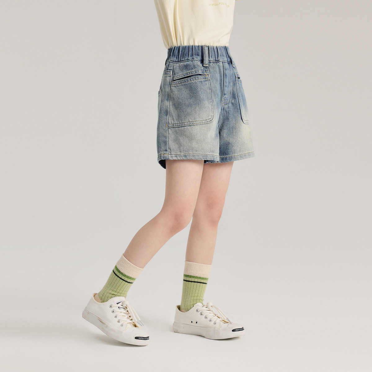 布丁哈鲁童装夏装女童2025夏季新款儿童休闲牛仔短裤童裤阔腿裤子