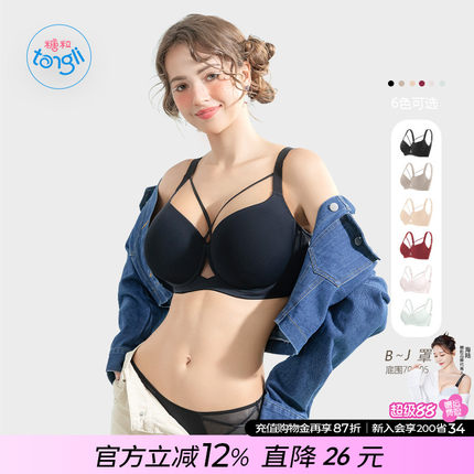 糖粒大码无痕内衣女大胸显小聚拢上托防下垂收副乳钢圈调整型内衣