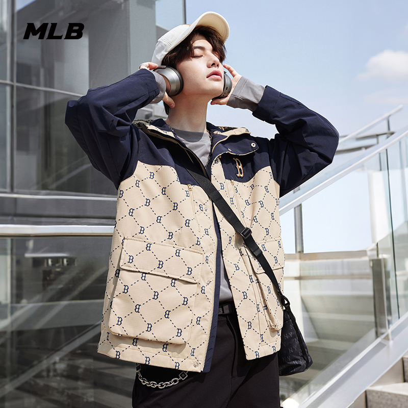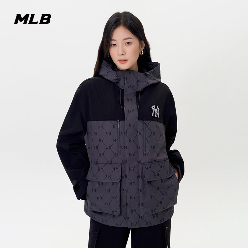 MLB官方 男女情侣休闲运动钻石老花连帽夹克外套25秋季新款WJM01