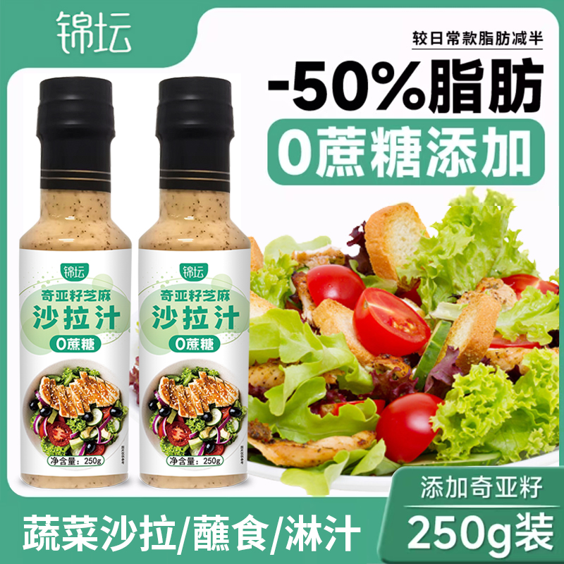 奇亚籽沙拉酱蔬菜水果专用芝麻沙拉汁轻食调料0脂肪油醋汁凉拌汁