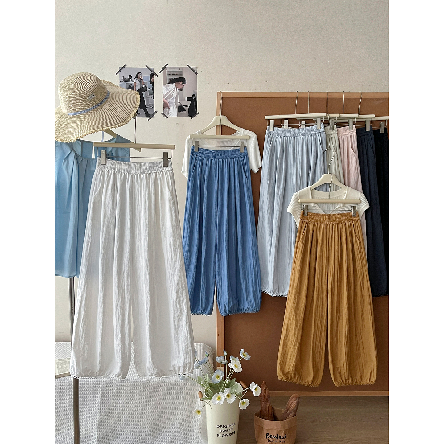 日韩系镂空花边冰丝棉气球花苞阔腿裤女夏慵懒度假风休闲灯笼裤