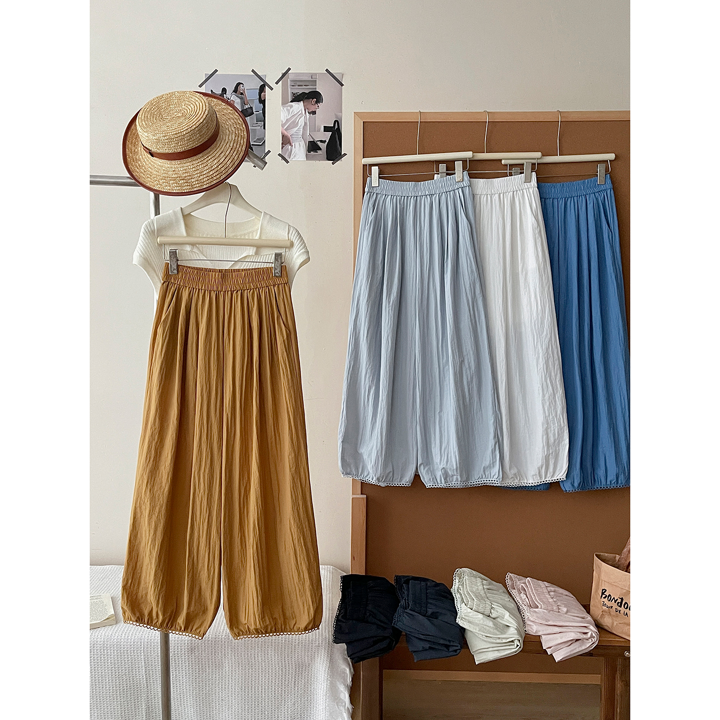 日韩系镂空花边冰丝棉百搭灯笼裤