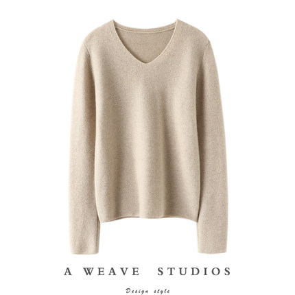 穿搭很抬气!气质反针~V领羊绒衫女纯羊绒毛衣套头针织打底衫秋冬