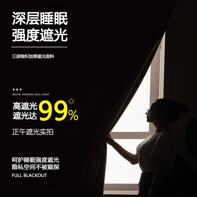 魔术贴窗帘免打孔安装自粘式出租房卧室飘窗全遮光遮阳布简易粘贴