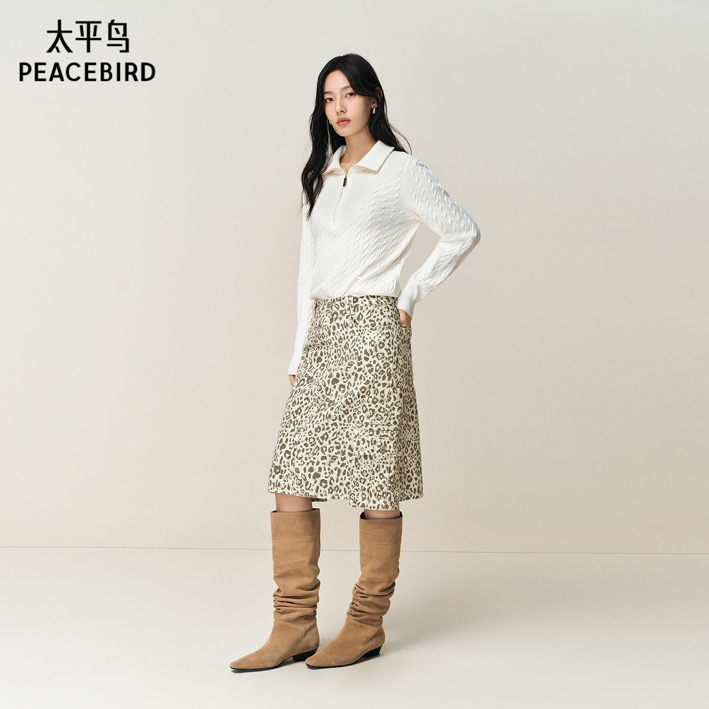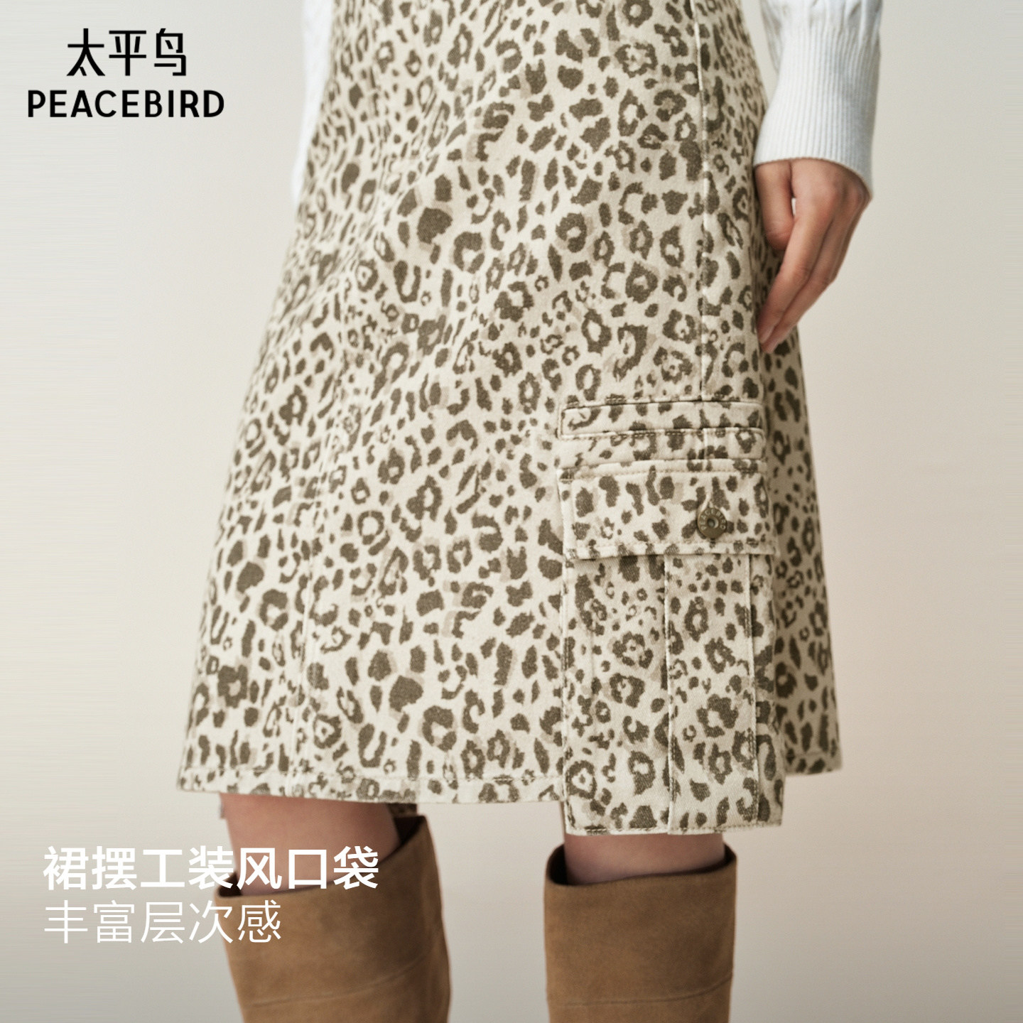 【商场同款】太平鸟豹纹半身裙中长裙品质感动物纹样A3HFF4B11