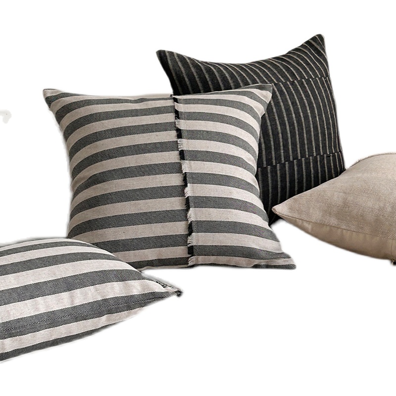BACKTO卜凸家居法式亚麻条纹抱枕现代简约客厅沙发样板间靠枕靠垫