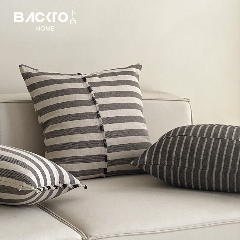 BACKTO卜凸家居法式亚麻条纹抱枕