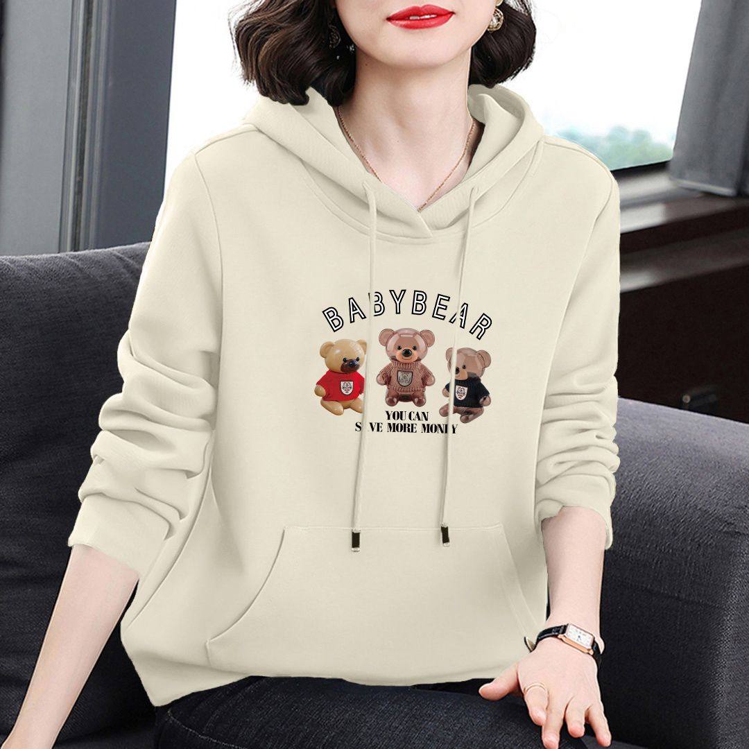 韩版女士连帽卫衣女100%纯棉宽松加绒加厚上衣薄款带帽高级感绒衫