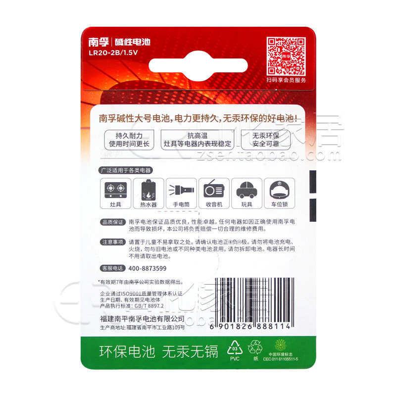 南孚大号卡装热水器碱性电池