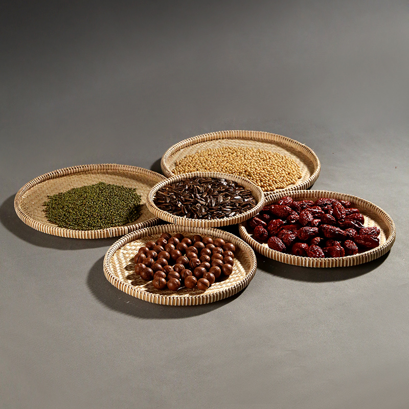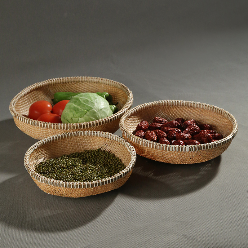 纯手工精编筐沥水篮圆形竹簸箕收纳篮家用竹扁水果篮竹筛子馒头筐
