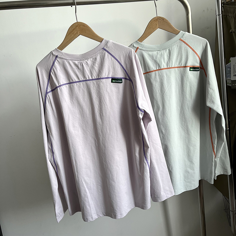 户外拼接撞色点缀 男女款骑行打底衫运动训练服圆领长袖T恤