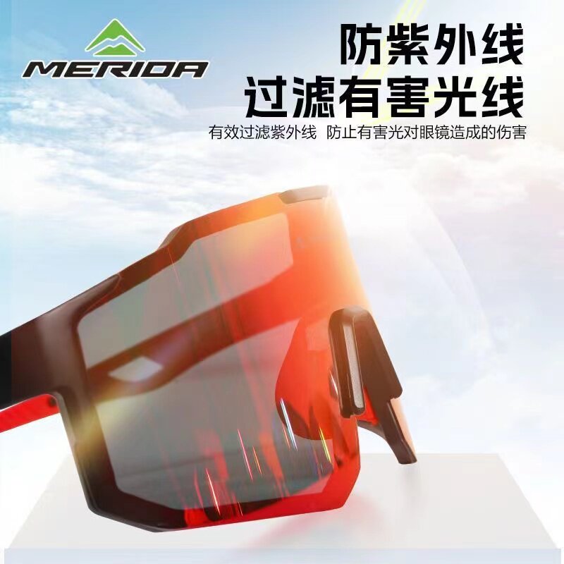美利达骑行炫彩偏光眼镜自行车护目镜防风沙跑步运动公路车眼镜男