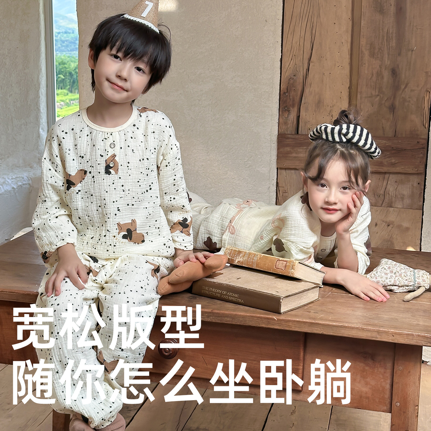 儿童睡衣套装2025春秋新款棉纱布家居服男童全棉女童空调服2件套