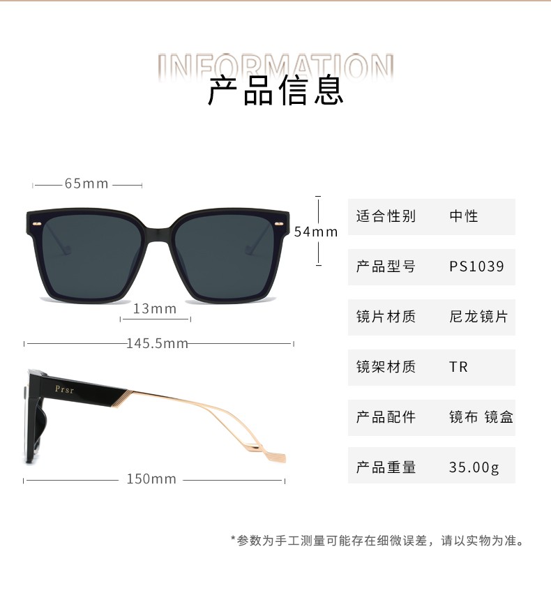 帕莎2022新款明星同款男女偏光太阳镜方框经典大框潮流墨镜PS1039