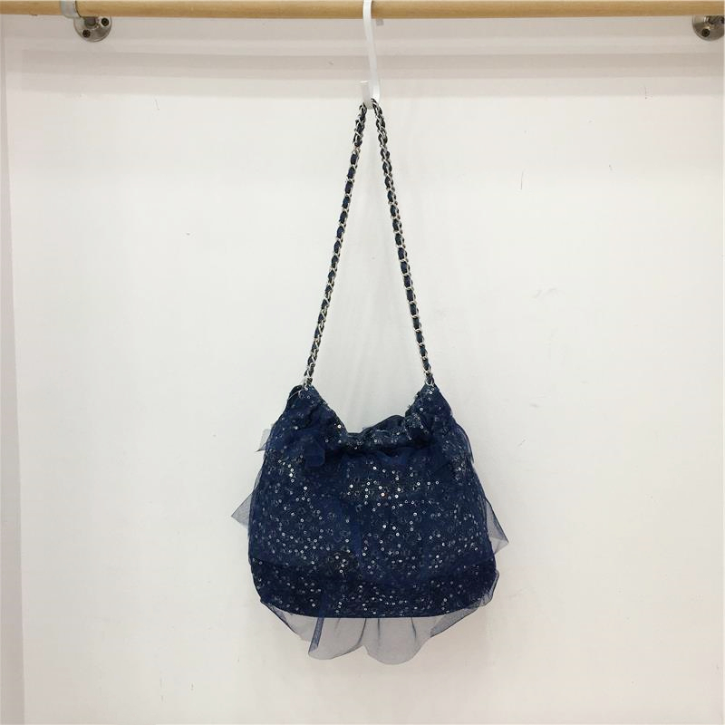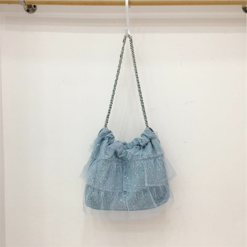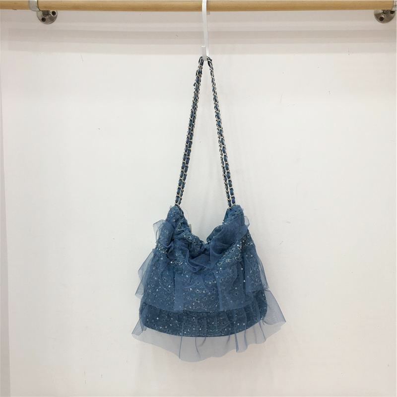 小脏柜 夏季时尚复古蕾丝亮片牛仔布包温柔甜美链条单肩女托特包