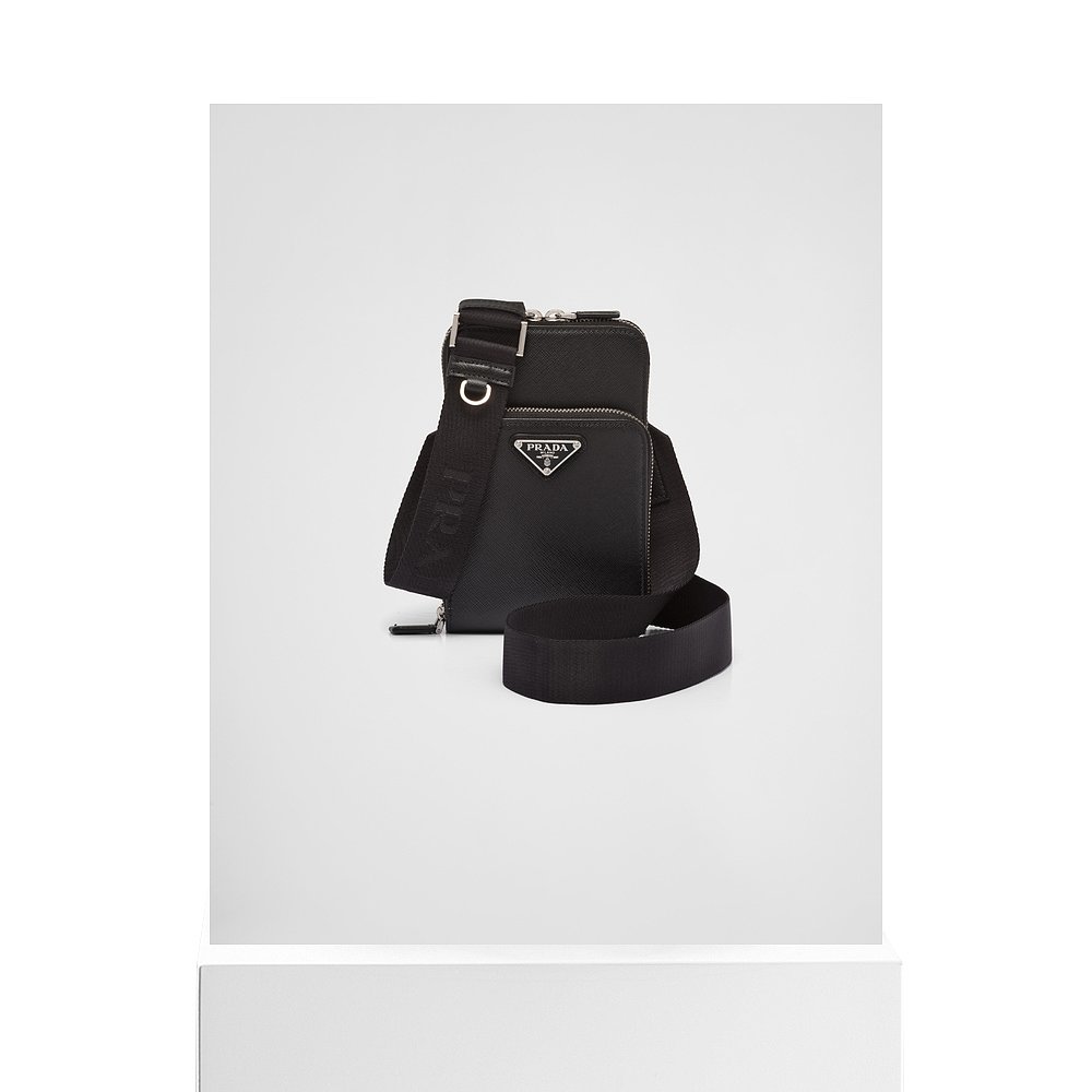 欧洲直邮PRADA(2025)Saffiano皮革智能手机保护壳斜挎包手机包