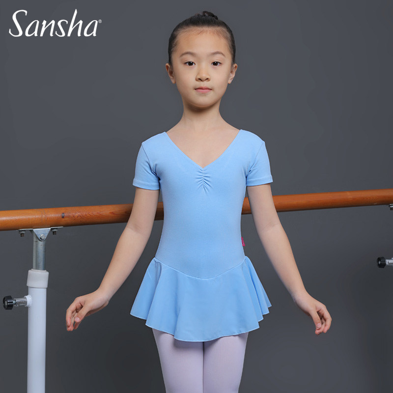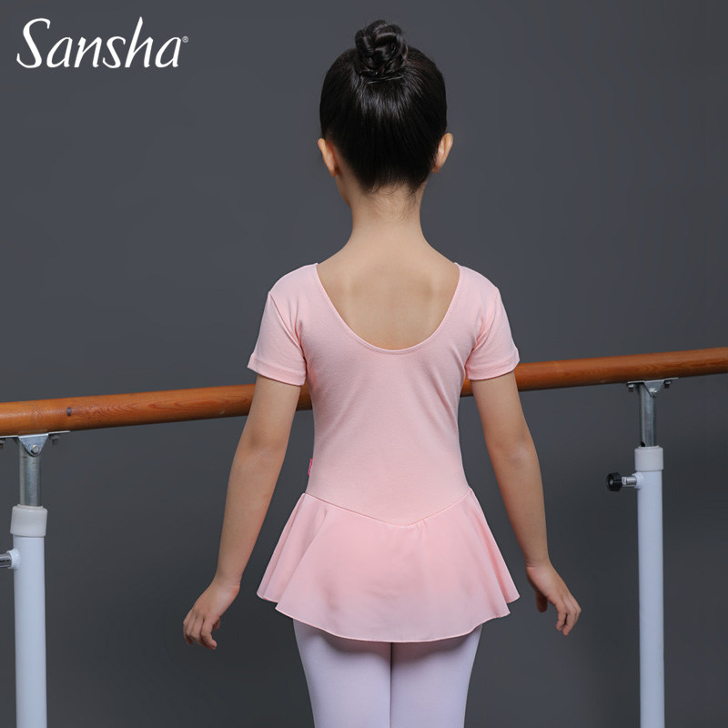 正品三沙儿童舞蹈服Sansha芭蕾舞裙连体服棉短袖中国舞考级练功服