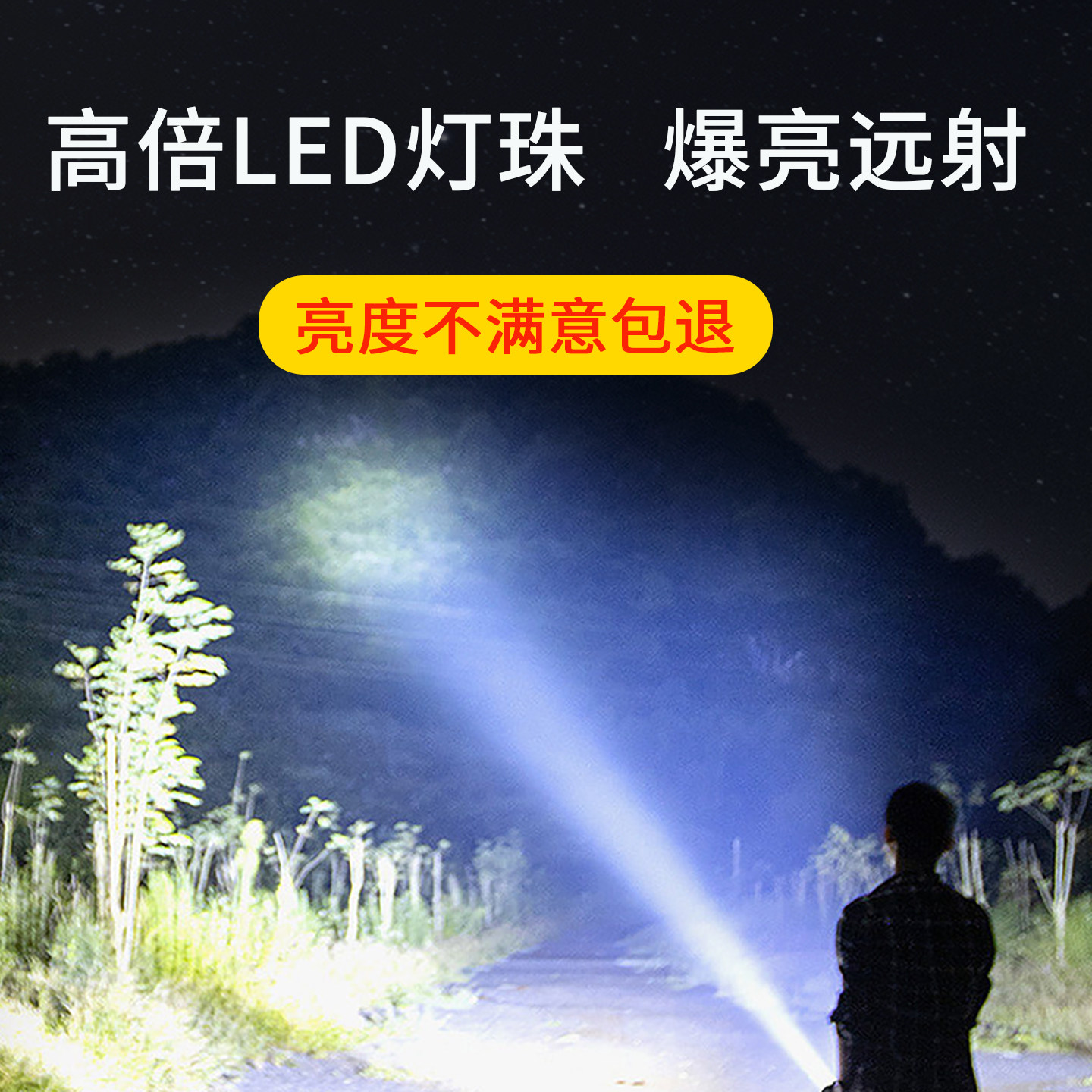 雅格手电筒强光充电户外超亮大功率远射led家用巡逻矿手提探照灯