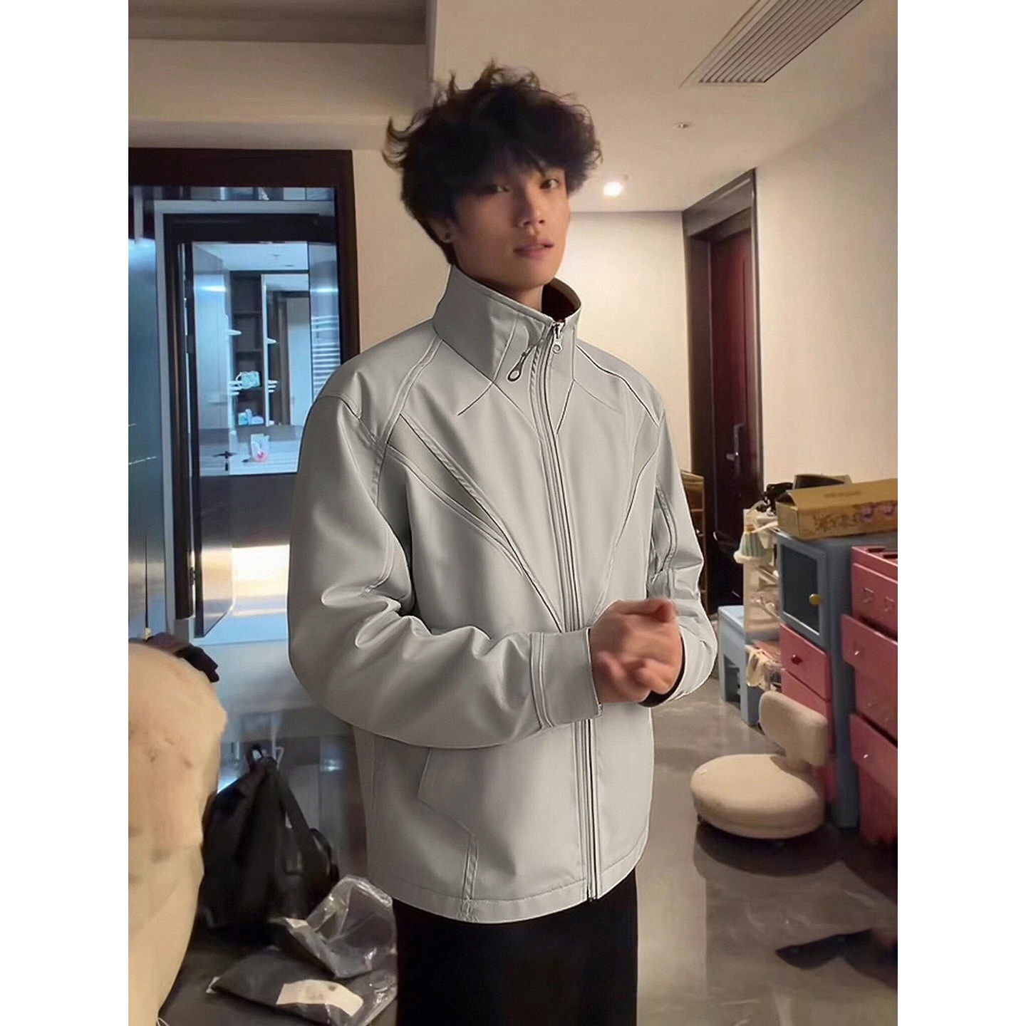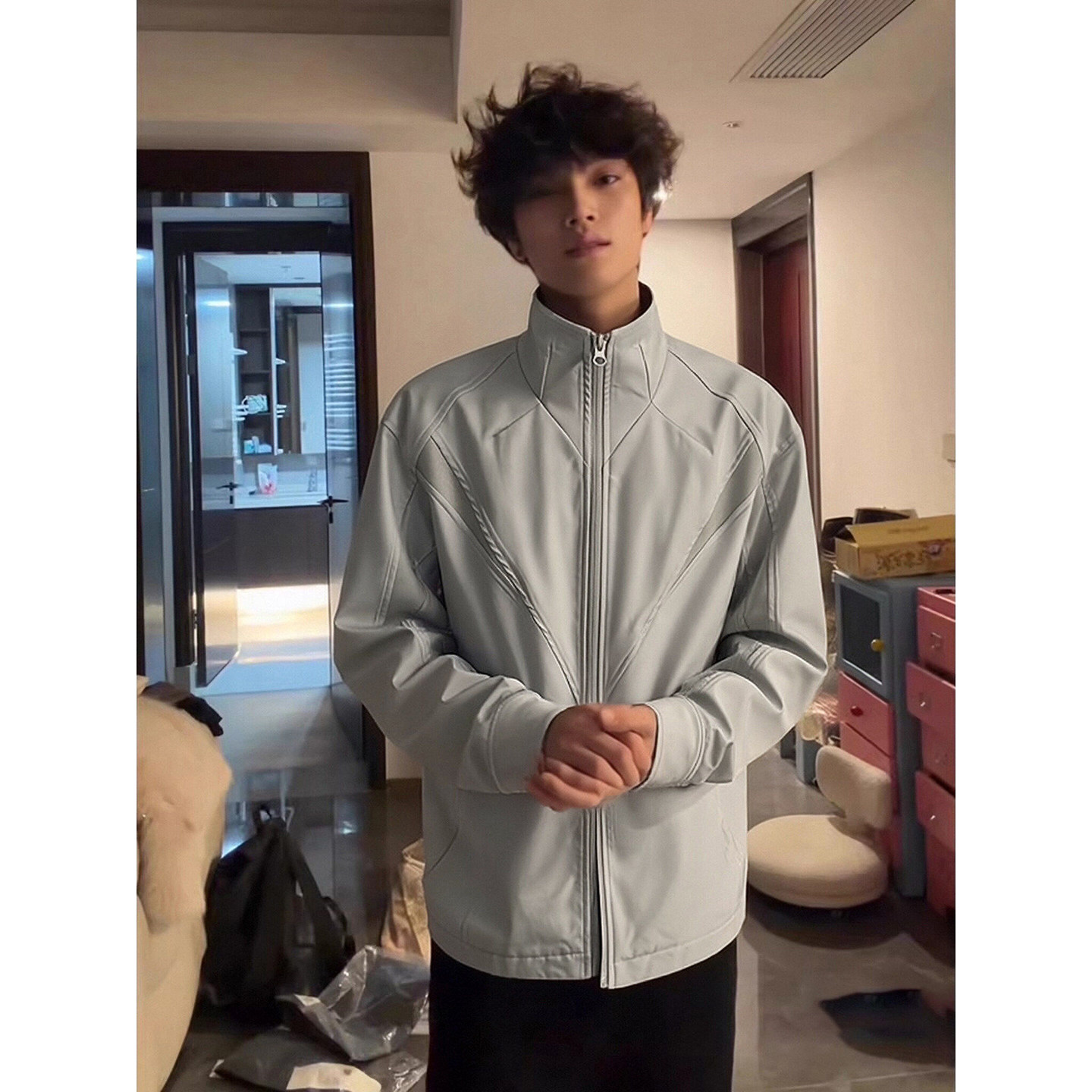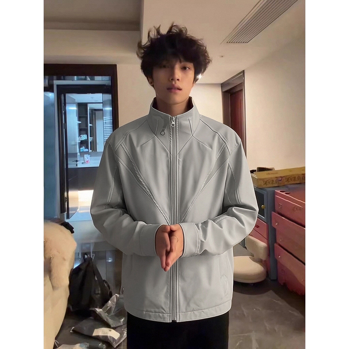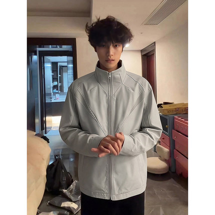 浅灰色美式机能冲锋衣男款春季户外登山防晒高领外套立领飞行夹克