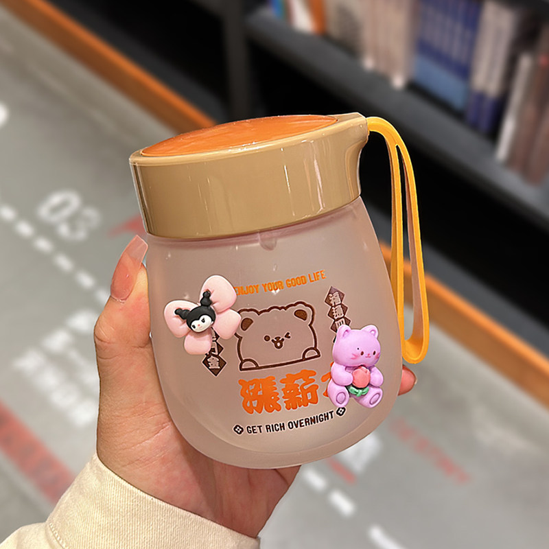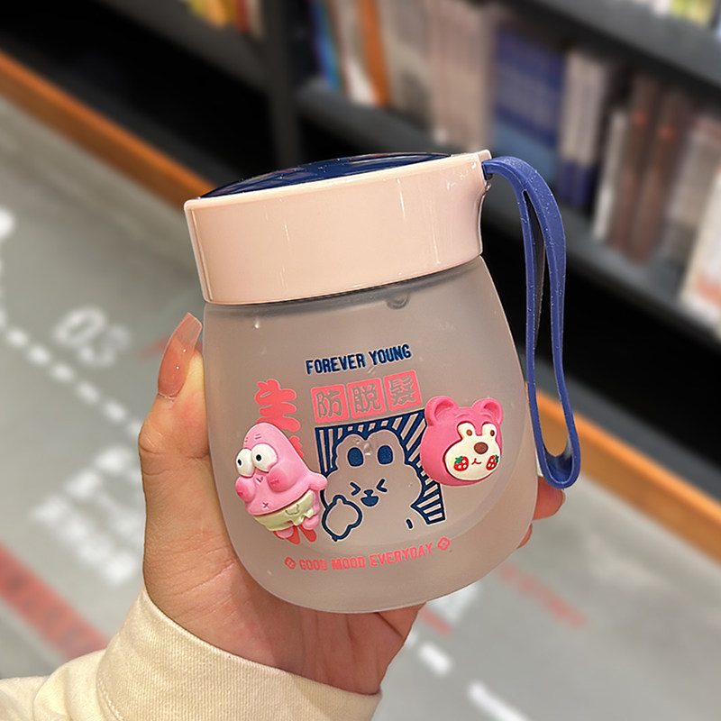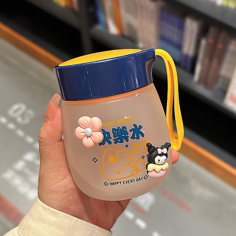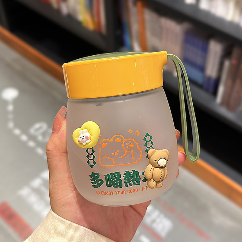 迷你可爱水杯女带刻度提绳磨砂玻璃杯便携耐高温防爆学生大肚杯子