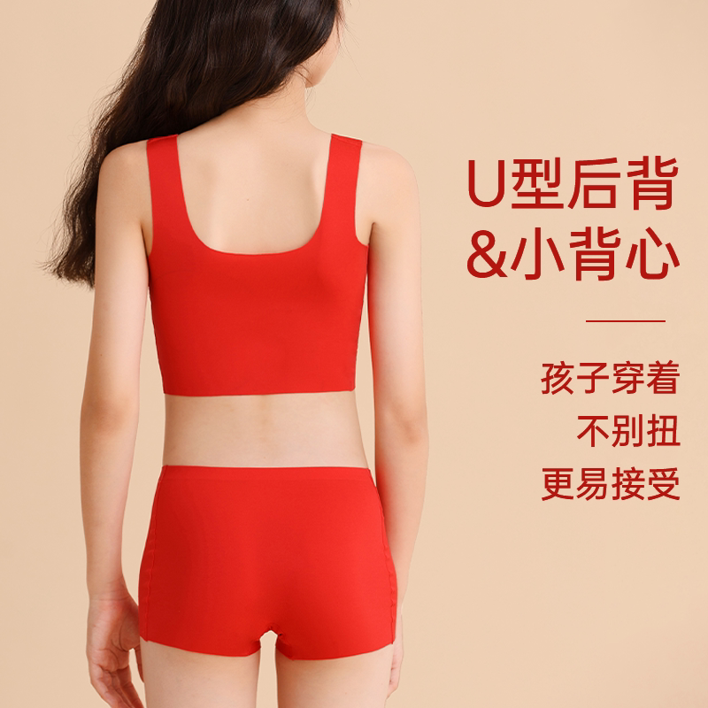本命年内衣套装女童防凸点小学初中生发育期红色背心少女运动文胸