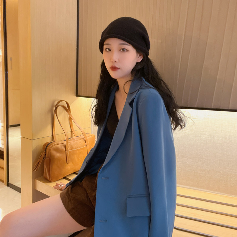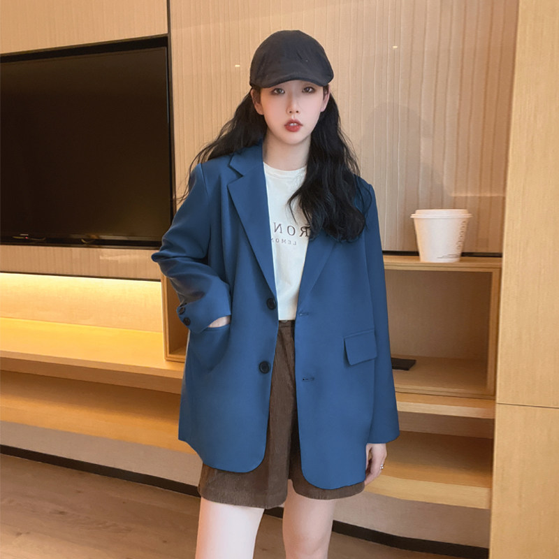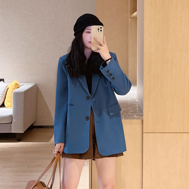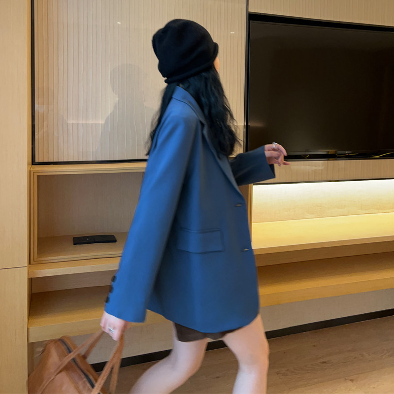 高级感蓝色小个子西装外套女春秋装新款韩版宽松休闲炸街西服