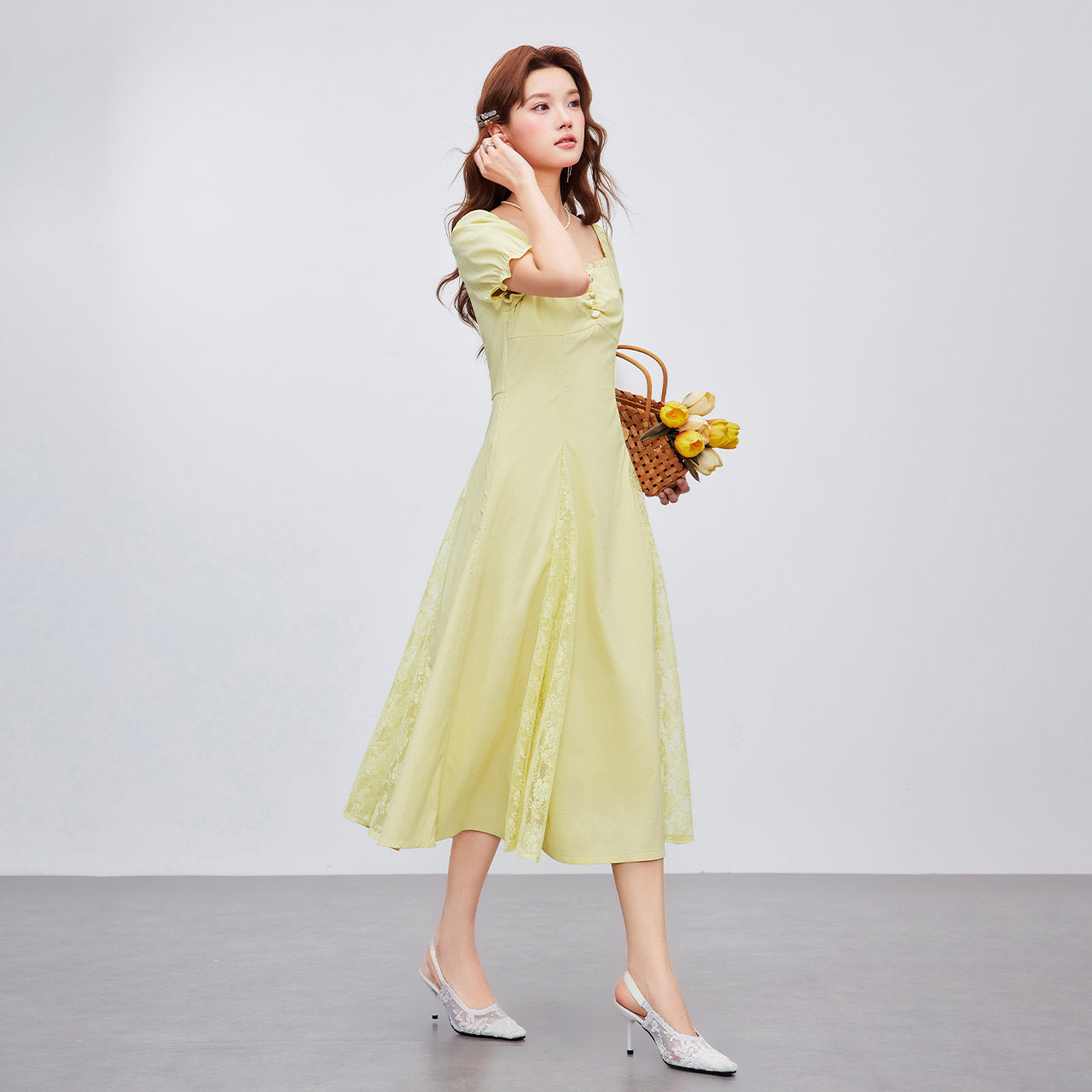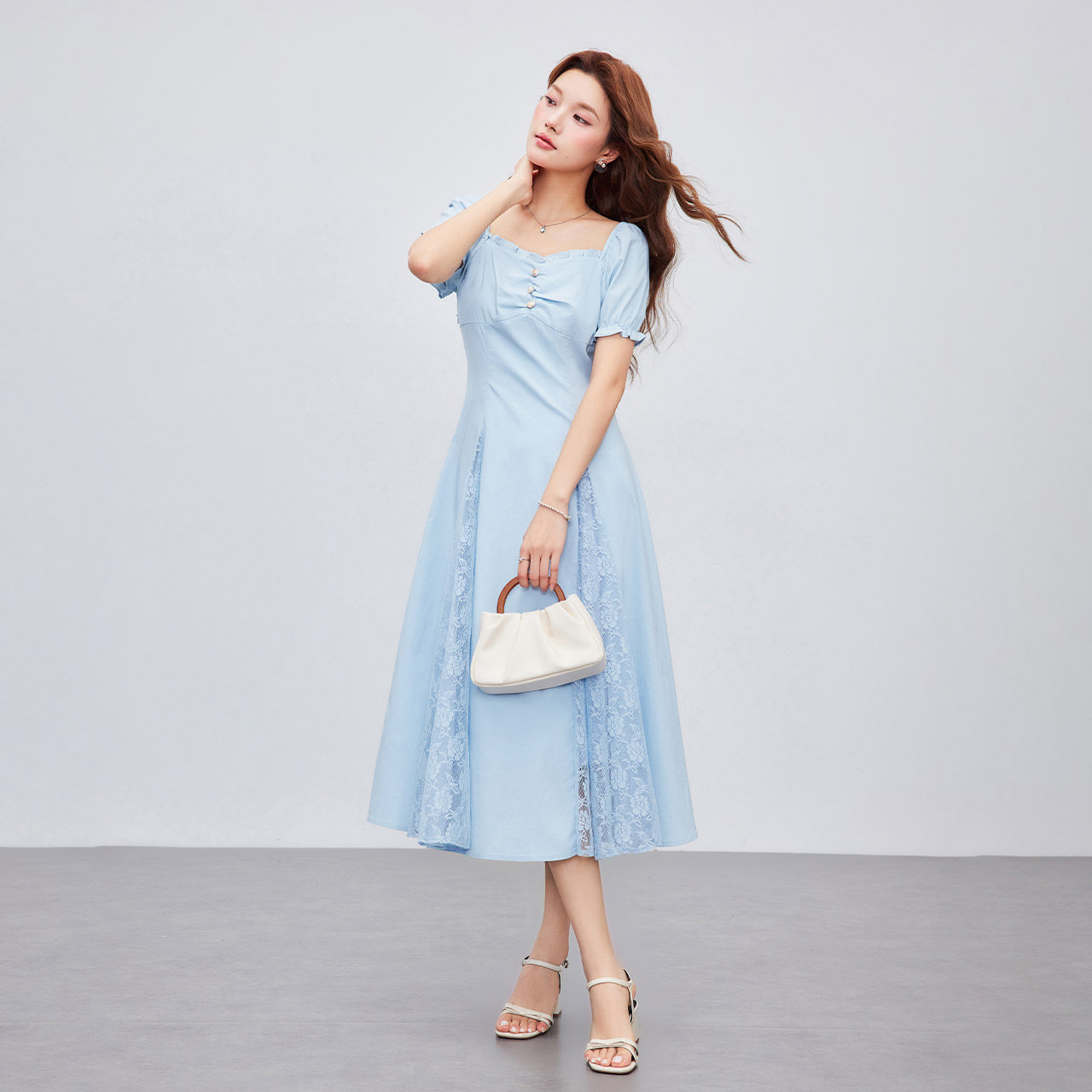 IEF/爱依服裙子2026夏季新款法式浪漫气质感度假风方领连衣长裙