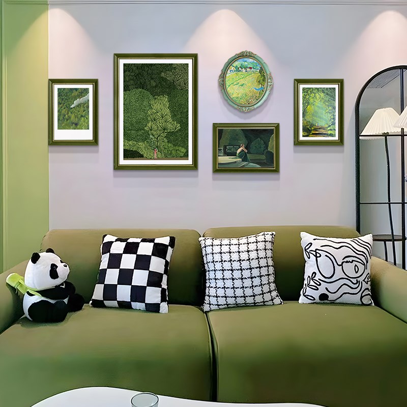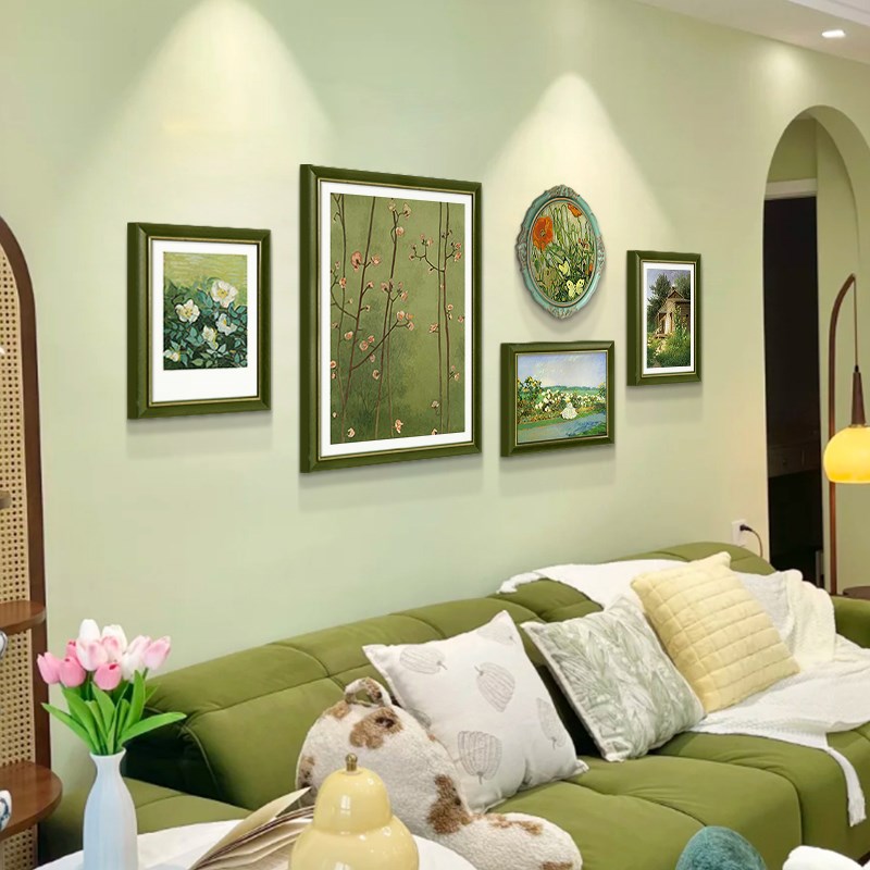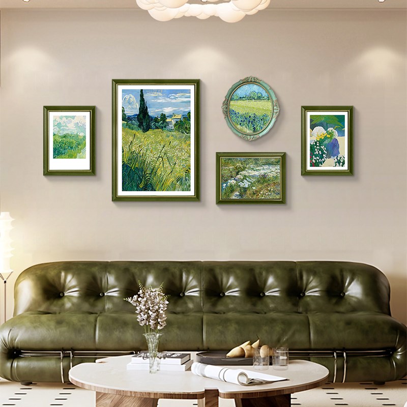 法式客厅装饰画莫奈复古油画沙发背景墙挂画小众艺术组合壁画高档
