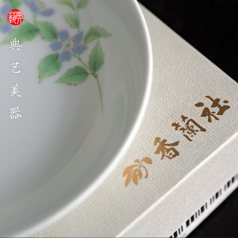 日本皇室御用品牌香兰社蓝标花卉双盘陶瓷浅碗菜盘家用小清新圆形