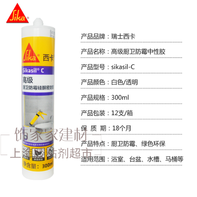 西卡玻璃胶防霉防水密封胶门窗厨房卫生间透明瓷白色硅酮中性浴室