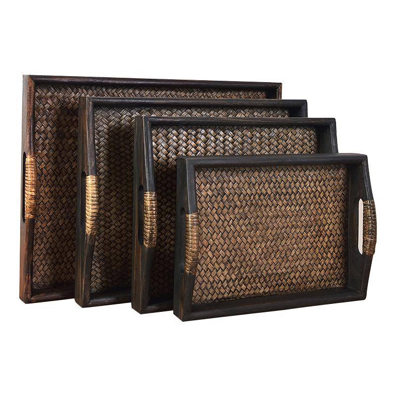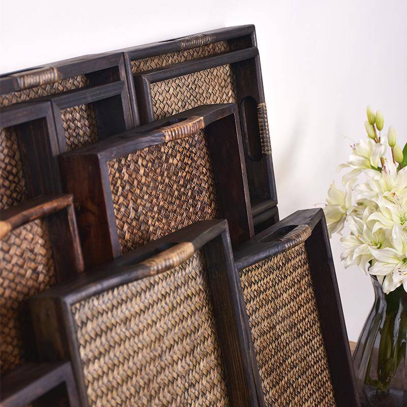 茶具托盘长方形实木茶盘茶托盘日式家用藤编盘美容院专用拍摄道具