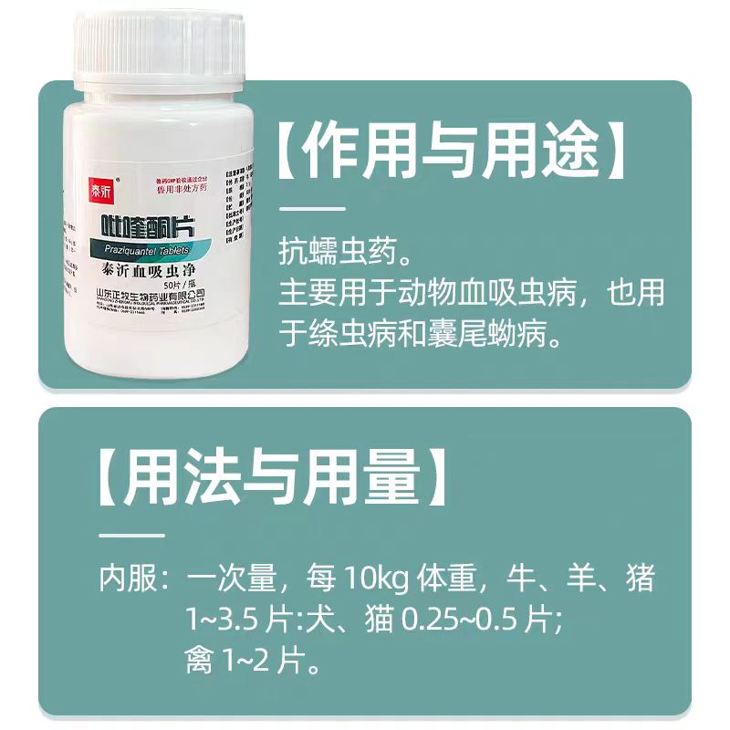吡喹酮片兽用猪牛羊禽用猫咪狗狗血吸虫净绦虫囊尾蚴病驱虫药兽药