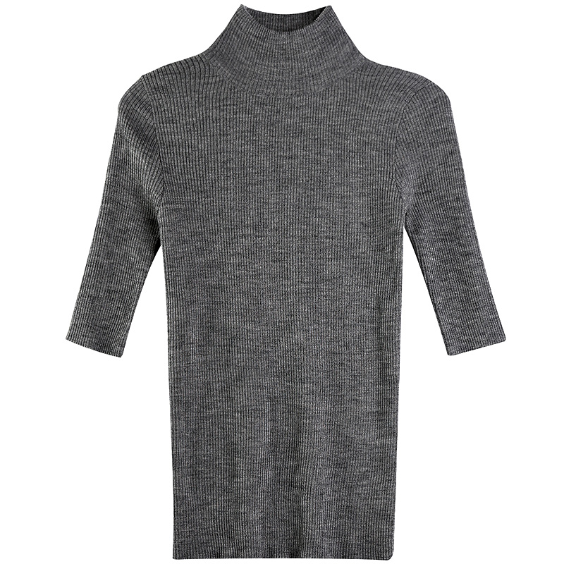 半高领针织短袖女毛衣薄款内搭春秋立领中袖修身半袖打底衫上衣黑