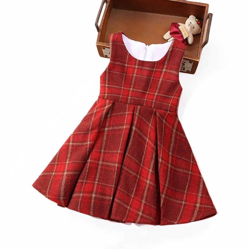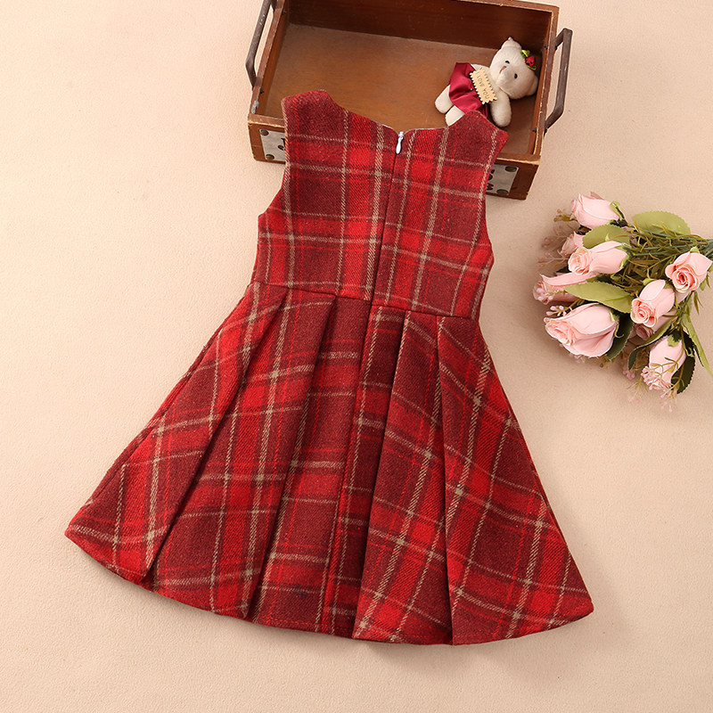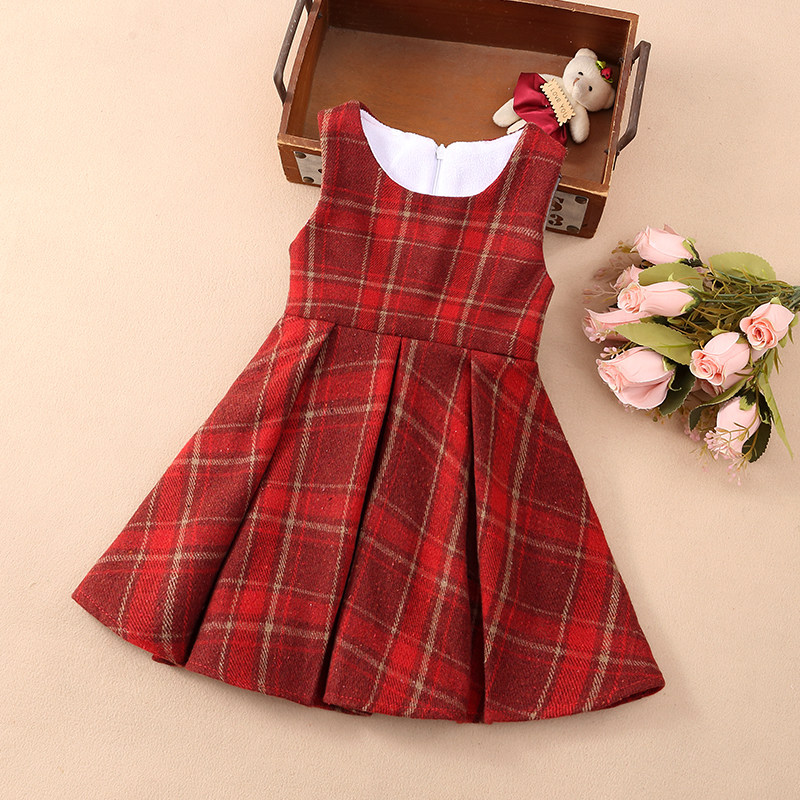 女童红色毛呢背心裙儿童公主连衣裙宝宝新年装春秋冬加绒马甲裙子