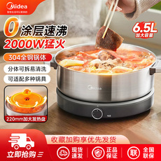 美的速沸电火锅0涂层不锈钢家用分体式多功能电热锅煮锅火锅专用