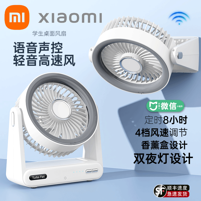语音智能冰感小风扇带灯免打孔壁挂静音桌面宿舍定时小型便携充电