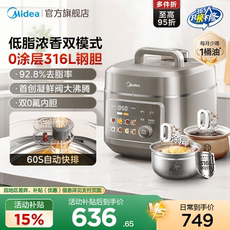 美的0涂层电压力锅家用大容量0氟双胆智能多功能高压锅6L高压饭煲