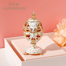 俄罗斯复活节彩蛋合金金属镶钻首饰盒家居饰品摆设品天鹅蛋摆件
