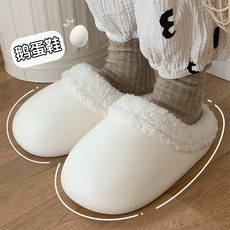 细细条 简约防水棉拖鞋男女冬季室内家居保暖毛绒绒月子鞋鹅蛋鞋