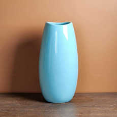 蓝色鹅蛋鱼嘴口陶瓷花瓶家居客厅餐桌电视柜摆件内外釉面可装水